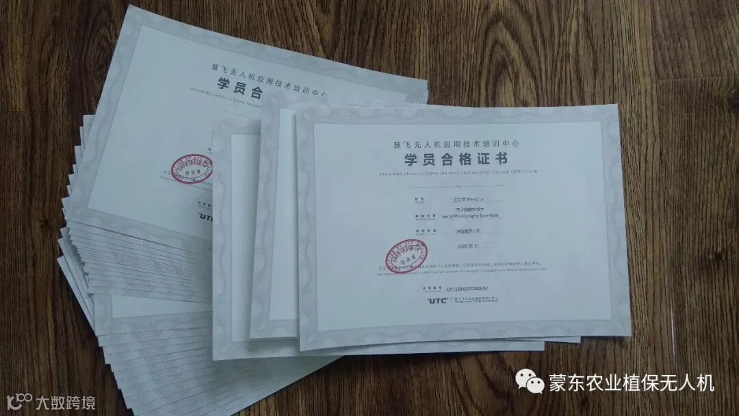 课程颁发由中国航空运输协会和中国成人教育协会认证的《UTC无人驾驶航空器系统操作手合格证》+慧飞颁发的《慧飞无人机应用技术培训中心学员合格证书》。