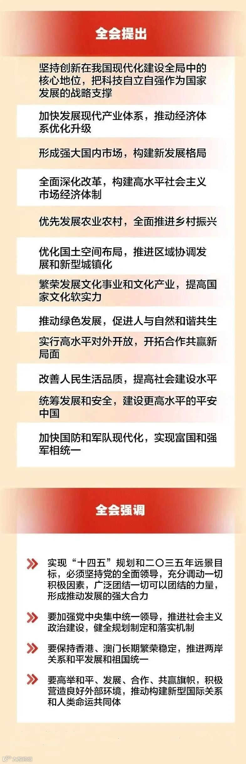 会议展望未来,提出了2035年我国社会主义现代化远景目标,同时提出“十四五”时期我国经济社会发展的主要目标。这对于党今后的工作具有重要指导意义。