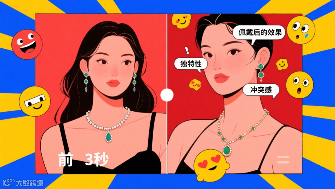 案例:某账号用“对比视频”(同一女生戴普通饰品vs戴他们家饰品),点击率提升5倍。