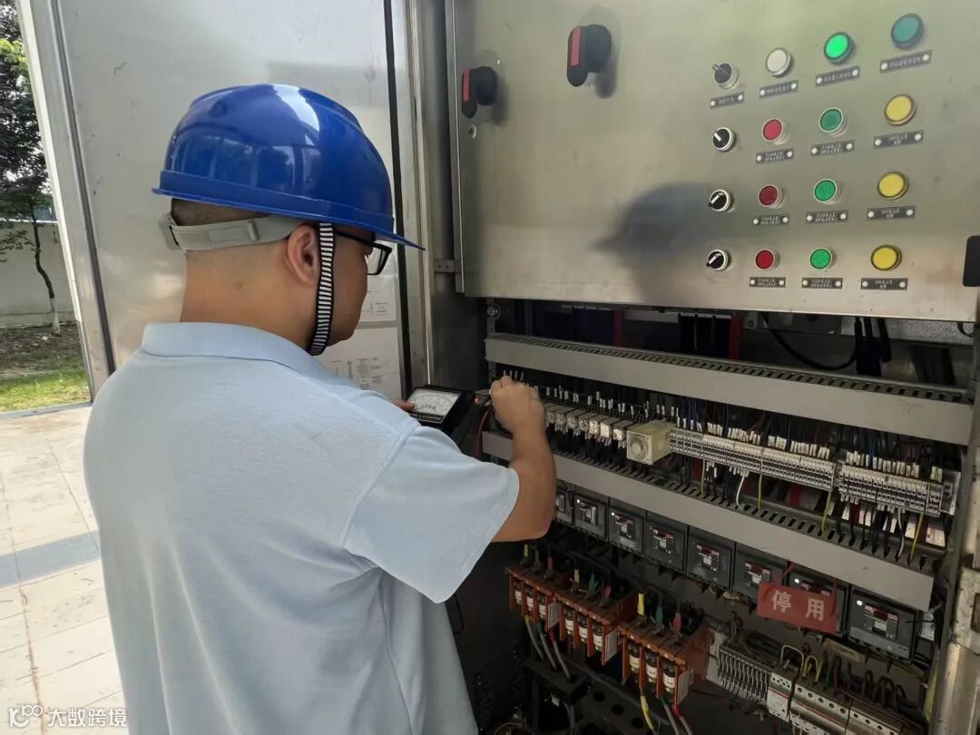 协调启停流程、理线换钳、测数据递工具——三人配合默契。40分钟的维修时间里,他们像被“焊”在设备旁。随着“咔嗒”一声轻响,控制柜指示灯恢复正常,1#泵重新发出平稳的轰鸣,水流顺着管道奔涌而去。这场与高温的较量,最终以供水的稳定运行画上句点。