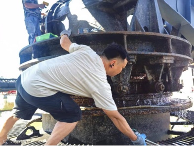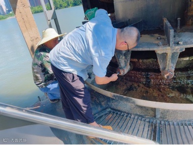 上午10点,毒辣的太阳早已将取水船的甲板炙烤得滚烫。宗关水厂运行车间维修班接到紧急通知:四号船摇臂管出现渗漏,二号船摇臂管也需要补油。