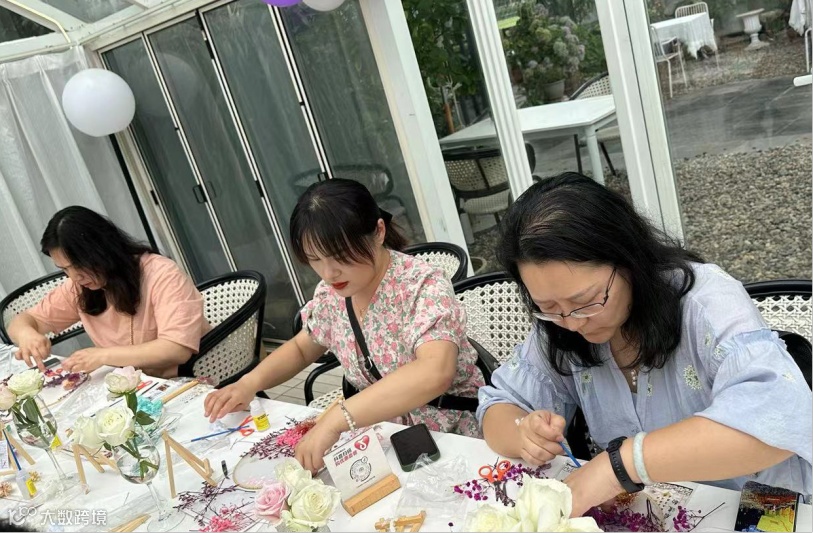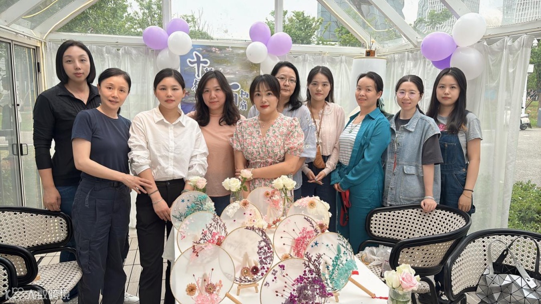 经过一个多小时的慢工细活,原本空空如也的团扇变得“花团锦簇”,一幅幅充满创意的画面跃然扇上,一件件独具匠心、美不胜收且具有观赏与实用双重价值的的团扇作品渐次诞生,现场氛围热烈。大家拿着自己亲手制作的团扇,互相鼓励赞美,争相合影。现场拍摄的照片展示了各式各样制作精美的团扇,定格了巾帼们手持团扇生姿摇曳、仪态优雅、顾盼生辉的瞬间,也凝聚了大家感受传统文化、品味东方韵味的喜悦和幸福。