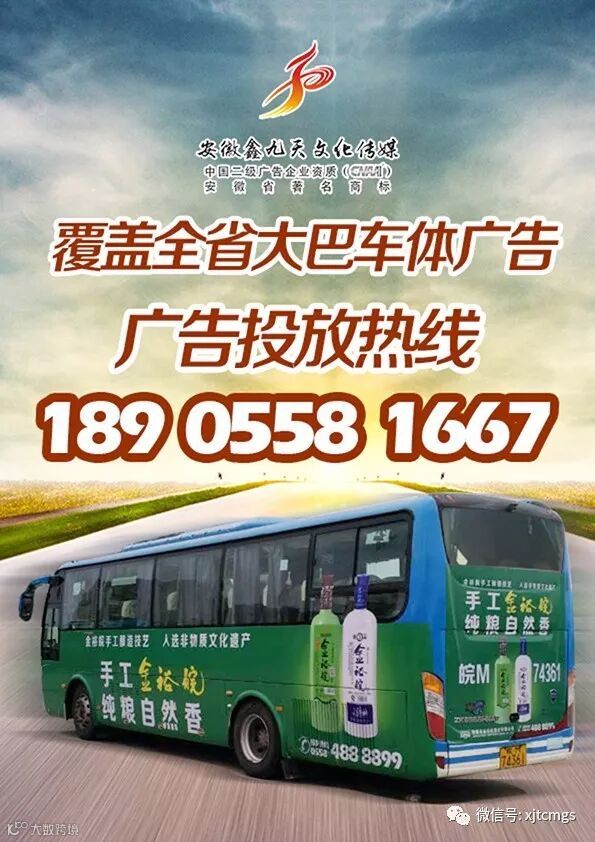 安徽鑫九天传媒独家拥有阜阳城乡车体广告600余辆,覆盖阜阳三区五县80平方公里,受众群体达1000万人次,17年又拿下合肥发往各个地级市城际大巴车体广告,色彩艳丽的客车每天穿梭在城乡道路上吸引着众多的人群观看,被誉为“流动的户外媒体”。