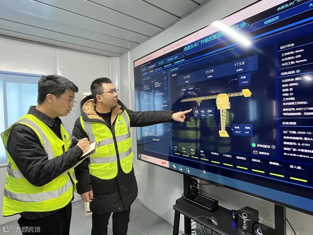 一旁的项目部内,王文杰打开电脑大屏调出项目新建设的智慧工地平台,进行后台监管。平台上,塔吊施工等实时状况以3D模型演示,各类施工数据一目了然。王文杰介绍,工地布设了AI监控系统,可对施工人员违规操作进行监控、抓拍,并实时报警,提醒管理人员及时纠正,让施工管理更加及时高效。