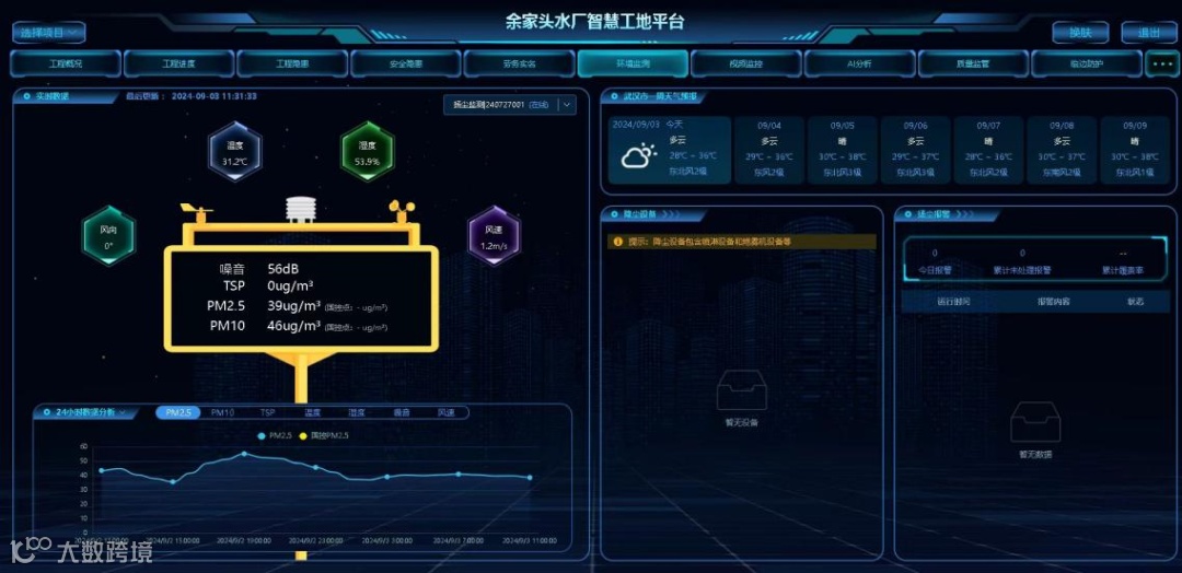 与此同时,余家头水厂智慧建造项目还特别注重环境友好型水厂建设。为此,武汉控股工程公司引入了环境监测系统,该系统能够全天候实时监测工地周边的空气质量、噪声状况。通过安装在工地各处的传感器网络,可以即时获取PM2.5、PM10等颗粒物浓度数据,噪声强度变化情况,并将这些数据上传至云端服务器进行分析处理。一旦监测到超标现象,系统会立即启动应急响应机制,采取相应措施改善环境质量,比如加大喷淋频率来降低粉尘浓度,或是调整施工时间来减少噪音污染。
