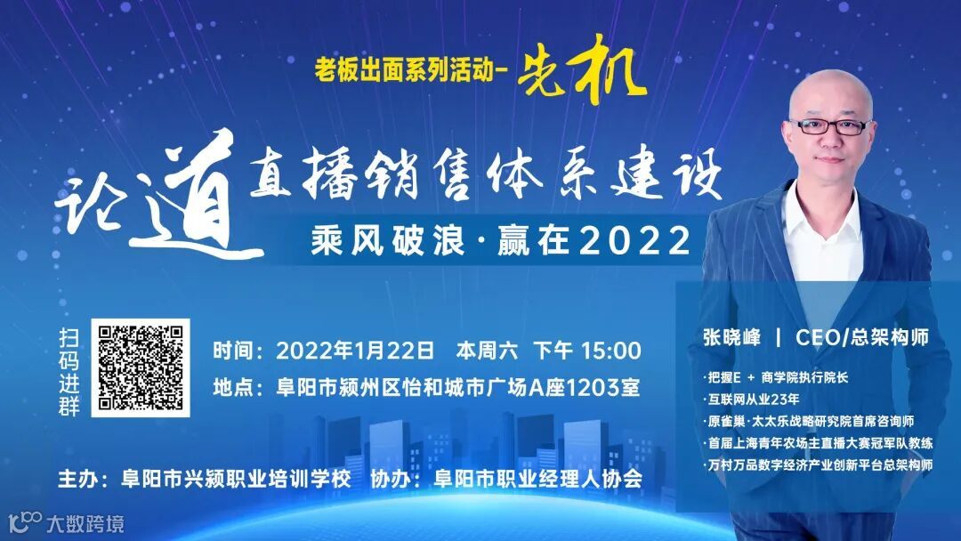 2022年1月22日下午15:00,在阜阳市颍州区怡和城市广场A座12楼1203室,由阜阳市兴颍职业培训学校主办,阜阳市职业经理人协办的“数字经济下的直播培训体系建设研讨会”如火如荼举行,本次研讨会系阜阳市职业经理人协会“老板出面”系列活动,现场行业大咖针对“直播销售体系建设”进行“论道”。