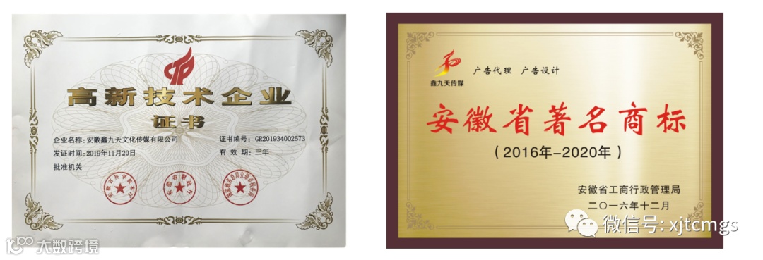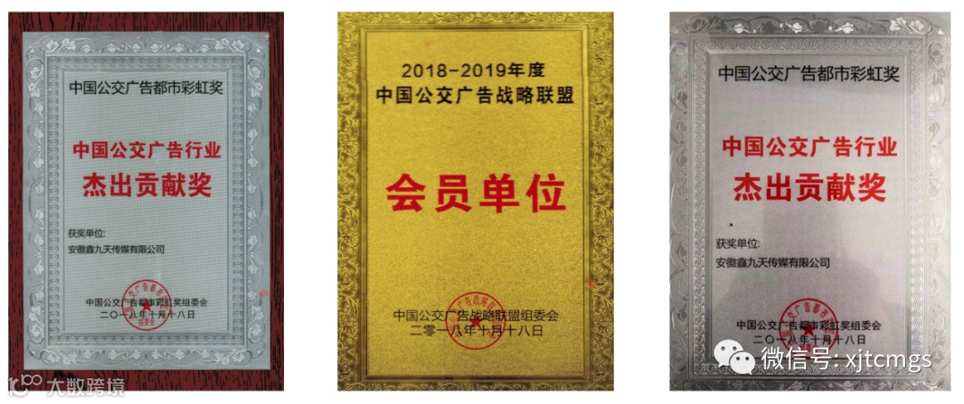 安徽省安徽鑫九天2009年涉足广告行业,专注“出行领域”媒体经营开发,被中国广告协会评为中国广告“二级资质”企业公司,鑫九天商标被安徽工商局认定为“安徽省著名商标”,先后两次被安徽省广告协会评为“广告发布诚信”单位。
