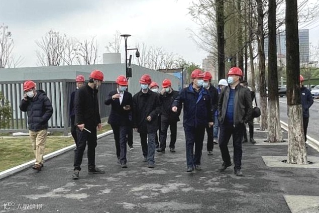 曹明一行首先视察了项目之一的常青公园CSO调蓄池。