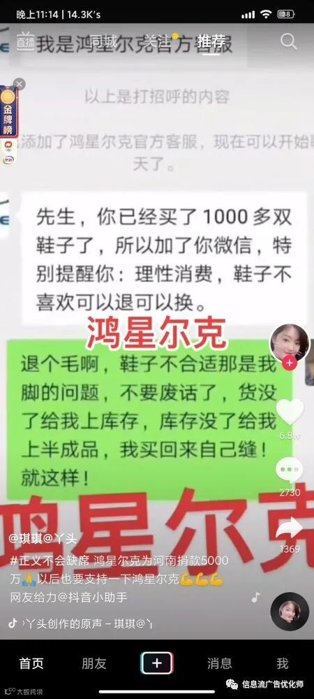 还有一些网红甚至喊出了愿为鸿星尔克免费带货100年。