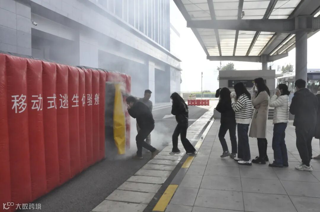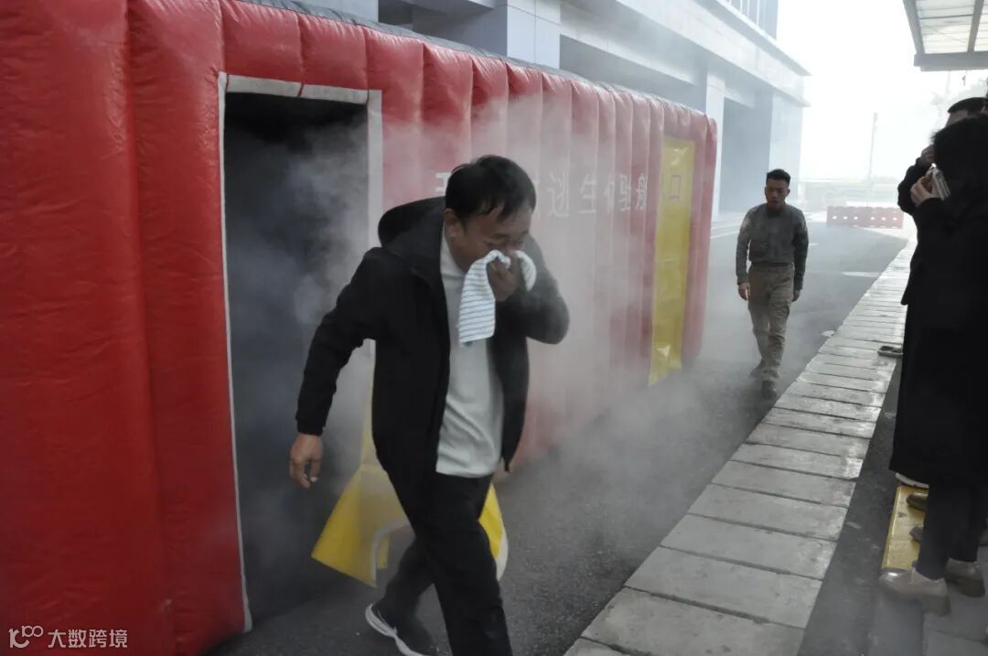 逃生体验屋演练环节,模拟真实火灾中的浓烟、黑暗环境,全员在教员指导下分组依次进入逃生体验屋,员工在近似逼真环境下,按照学到的逃生知识,捂住口鼻、低姿前行,沿着预设的疏散路线迅速有序地撤离到安全区域。该体验让大家真切感受到火灾现场的紧张氛围,进一步提升全员在紧急情况下的心理素质、应急反应能力和疏散逃生技能。