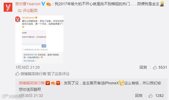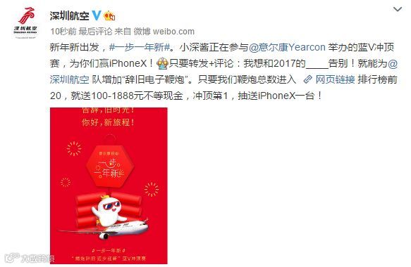 按照蓝V受支持度排名,@意尔康将从前20中抽送100-1888元不等现金或iPhoneX!