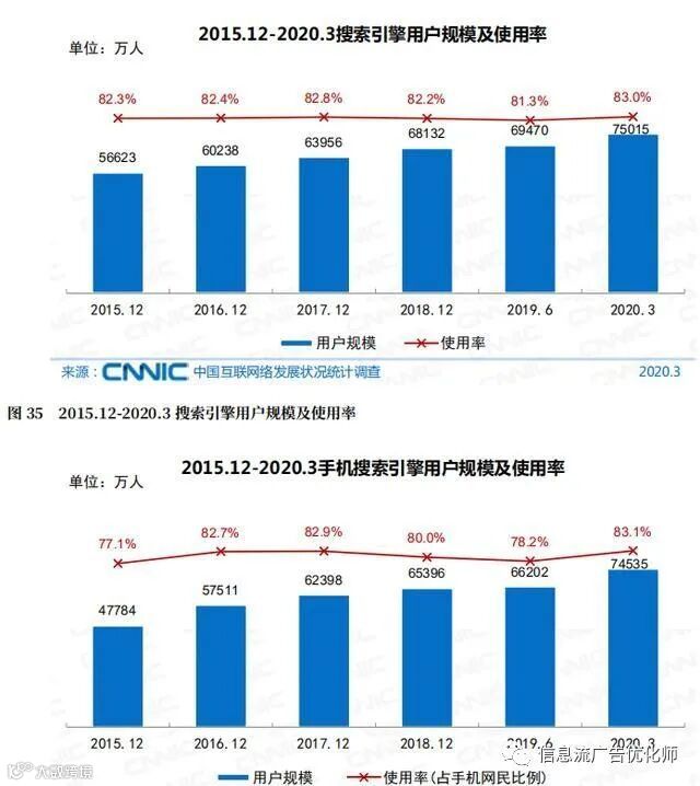 据中国互联网络信息中心公布的第44次《中国互联网络发展状况统计报告》显示,虽然2019年国内搜索引擎用户总数继续上升,但使用率却已经连续第二年下滑,从2017年的82.8%下降到81.3%。