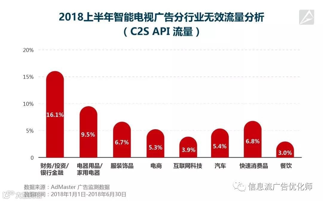 2)在智能电视端,不同行业受到无效流量的影响有一定差异。金融行业受到的无效流量影响最大,家电行业无效流量占比也较高,餐饮、互联网等行业的无效流量状况较为乐观,这与不同行业的智能电视广告投放形式和渠道的偏好有关。