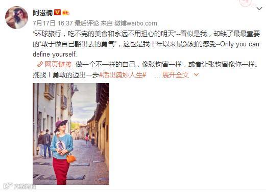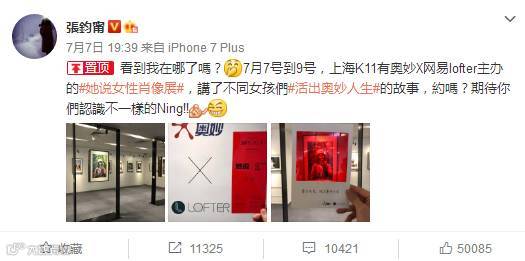 演员张钧甯单条微博图文转发11325次,评论10421次,点赞50085次。