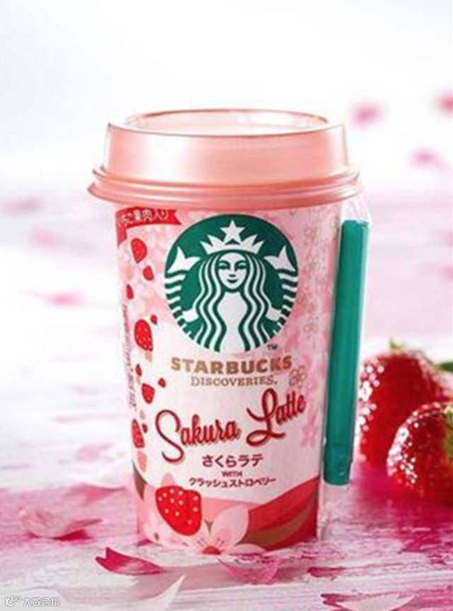 同样作为饮料,星巴克与三得利联合推出了一款樱花拿铁。这款樱花季产品从2月16日起在日本发售,你可以在7-11、LAWSON、Family Mart等便利店买到。樱花拿铁除了粉嫩的樱花图案包装,口味上也略有改变,加入了草莓果肉。