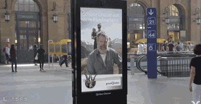瑞士格劳宾登旅游协会在火车站放了一块互动广告牌,从旁经过,