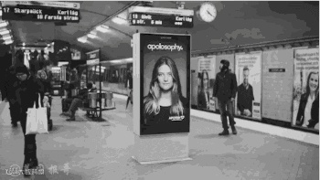 护发广告,地铁驶过,秀发就会随风飘逸。