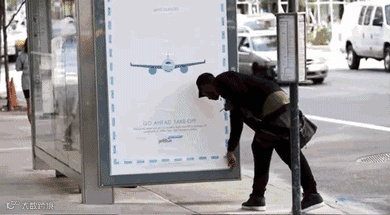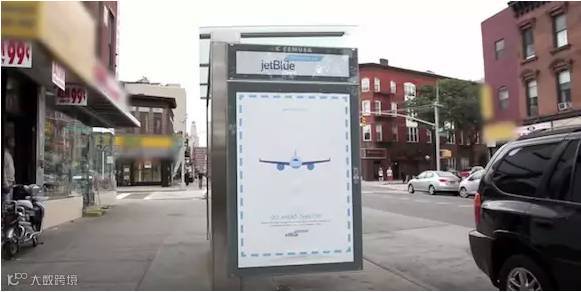 美国捷蓝航空在公交站的海报,