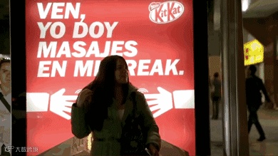 于是KitKat机智地推出了可以给人按摩的广告牌,内有传感驱动装置,