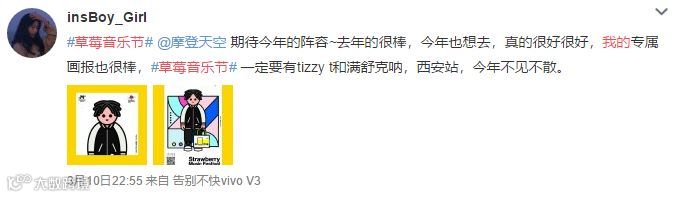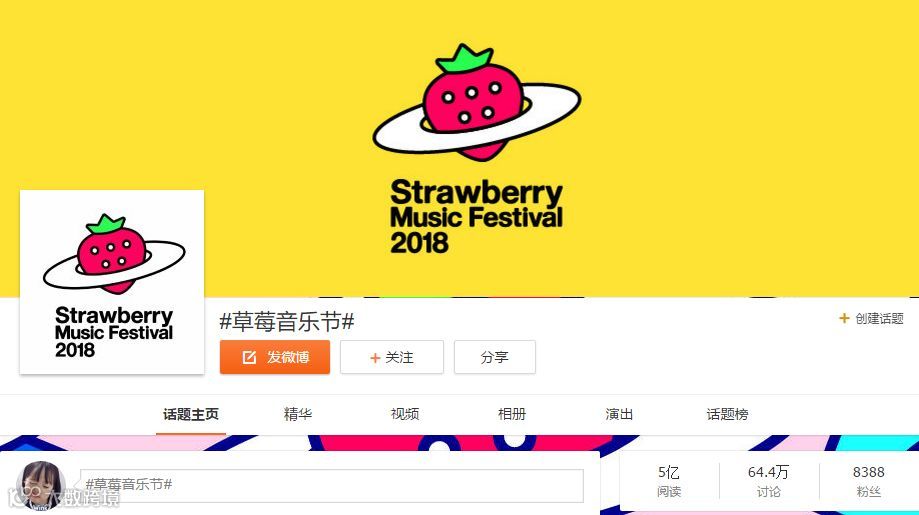 预热期间,为了让更多的年轻人参与到活动中来,草莓音乐节微博官方也首次开展“参加话题并分享「我」形象得音乐节全年通票”的粉丝福利。