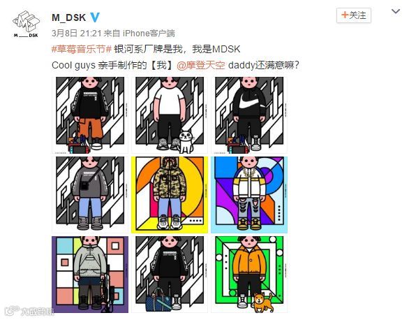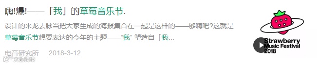 除了微博平台的推广曝光外,微信平台上,音乐类KOL——@电音研究所、@摩登音乐台等也通过此次草莓音乐节个性化的「我」,进行宣传推广。