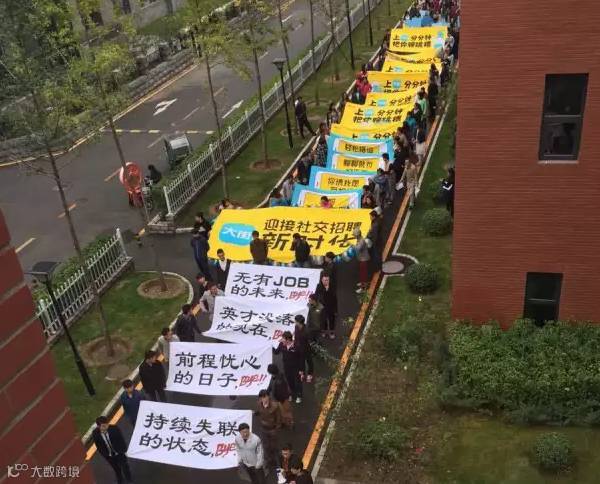 就在前两天,招聘网站大街网也尝试了自己的第一场撕逼之旅。他们组了个送葬方阵,前半部分是挽联和棺材,后半部分是自己的SLOGAN“分分钟把你聊跳槽”。