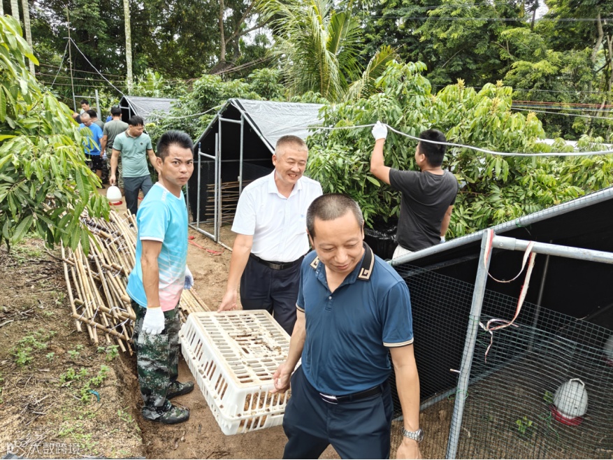 从项目规划到场地选址,从鸡舍建设到鸡苗引进,驻村工作队和村“两委”干部齐上阵,精心筹备、严格把控各个环节。特别是在前期工作开展中,驻村工作队多次与“博士村长”团队座谈交流、实地考察,明确了赤草村产业发展方向后,努力克服经费紧张等困难和挑战,利用工作队经费2万余元帮助村民搭建了约2000平方米的鸡舍,可满足5000只文昌鸡养殖需求,为项目的顺利推进奠定了坚实基础。