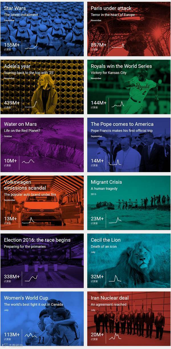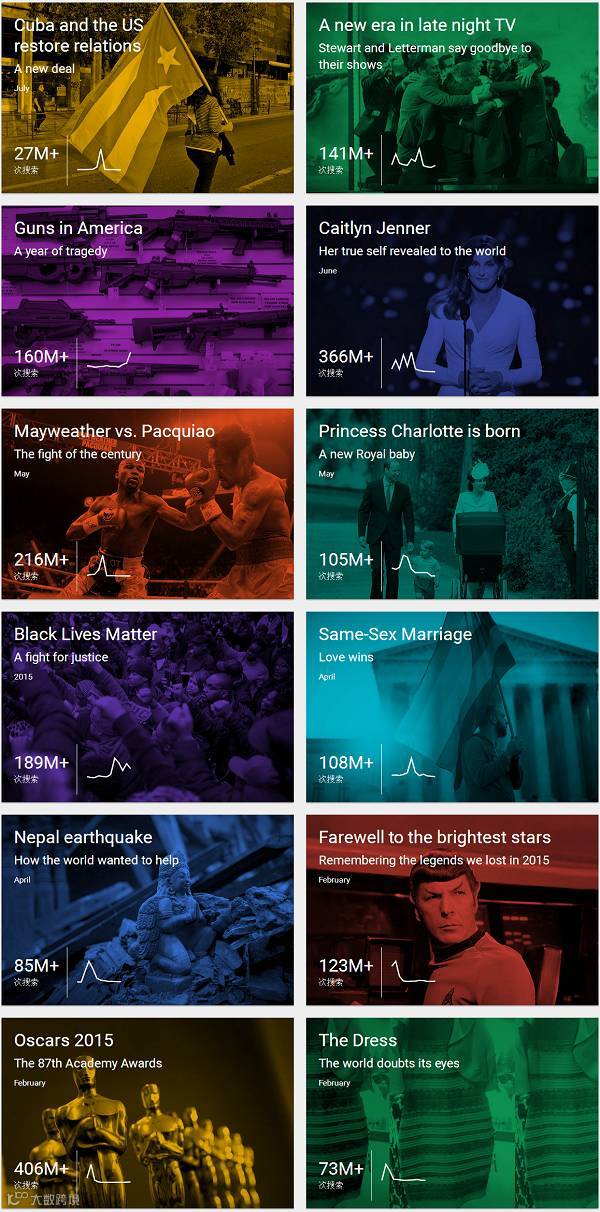 以下是谷歌发布2015年度热搜排行榜视频: