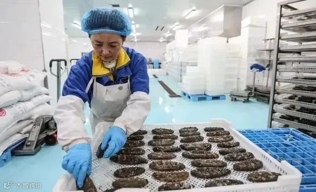 2024年5月21日,工人在大连棒棰岛海产股份有限公司生产车间整理海参产品