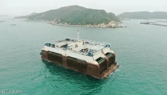 广东珠海万山海域拍摄的中国首台半潜式波浪能养殖旅游平台“澎湖号”