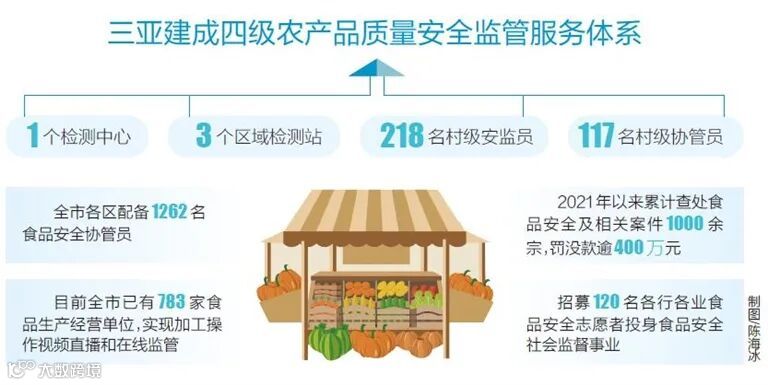 这并非孤例。记者了解到,三亚花“大力气”压实食品安全属地管理和企业主体“两个责任”,指导全市食品生产经营企业按要求配备食品安全总监、食品安全员,实现应配尽配。目前,三亚建成“1个检测中心,3个区域检测站,218名村级安监员,117名村级协管员”四级农产品质量安全监管服务体系,全市各区配备1262名食品安全协管员,打通食品安全监管“最后一公里”。