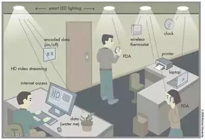 但和遥控器不同的是,Li-Fi利用的是可见光。给普通的LED灯泡装上微芯片,可以控制它每秒数百万次闪烁,亮了表示1,灭了代表0。这就意味着,将来家里普通的LED灯泡可能就可以变身互联网入口。而且,由于灯泡闪烁频率太快,人眼根本感觉不到,所以你也不用担心被自家灯泡“闪瞎眼”。