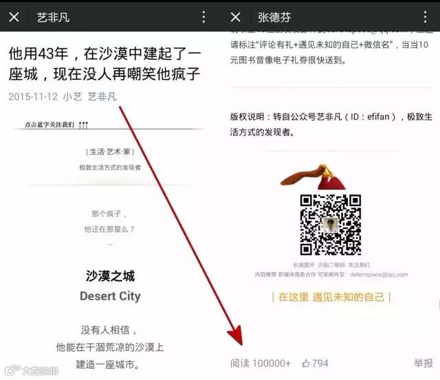 和十年后同样际遇的“养成阶段的小号”还有很多。此前以一千粉丝基数做出过几十万阅读的公号“艺非凡”,如今粉丝数已达到数万。但近日一篇文章被公号“张德芬”转载,阅读数也经历了8W+到10W+的升华。