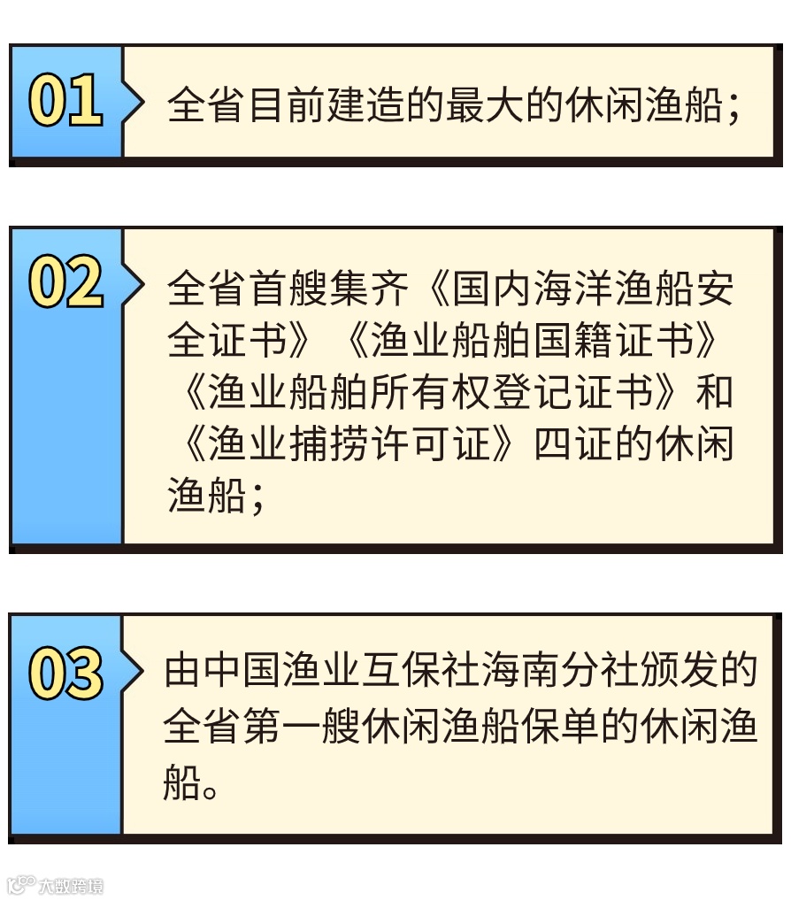 “琼三亚渔休88301”的交付不仅是三亚农投集团休闲渔业项目发展中的里程碑,同时,它也创造了海南省休闲渔船建造史上的3个“第一”: