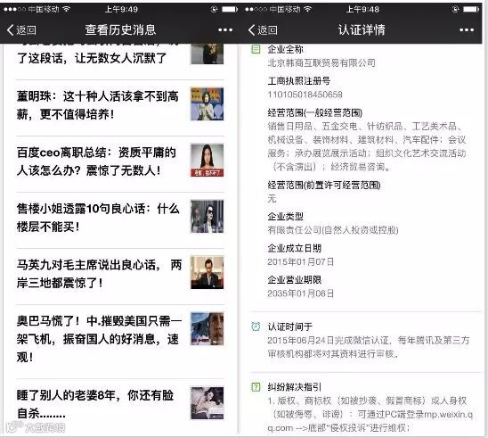 万达如此高调状告的“顶尖企业家思维”,到底是个什么样的微信公众号?在查阅了该微信公众号的基本资料后,发现其注册公司认证是北京韩商互联贸易有限公司,该微信公众号功能介绍: