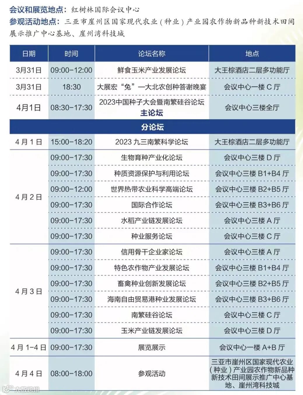 大会的举行时间将持续到4月4日——除4月1日的开幕式和主论坛,大会在4月2日至3日举办13场分论坛,同期还设有种业成果展示和品种田间展示。50多家种业产业链相关企事业单位集中亮相,展示交流最新成果。