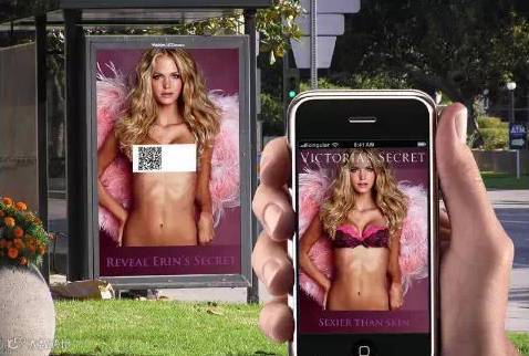 著名内衣品牌维多利亚在模特前胸盖上二维码,只有当你拿手机扫描才可以看到二维码下藏着怎样的春光。这样的二维码极大地满足人们的窥探心理,原来二维码的后面是维多利亚的秘密内衣,正如广告语所说的那样,“比肌肤更性感”。