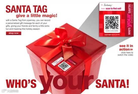 JCPenny是一家大型服装商场。当你为朋友家人在JCPenny购买一件商品,JCPenny可以为你定制专属二维码,通过扫描二维码输入你对收件人的祝福—可以是文字也可以是语音。收件人也可以通过扫描二维码收到你的祝福。