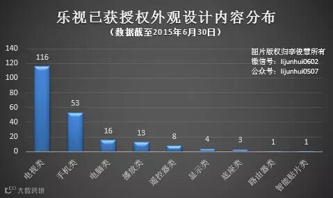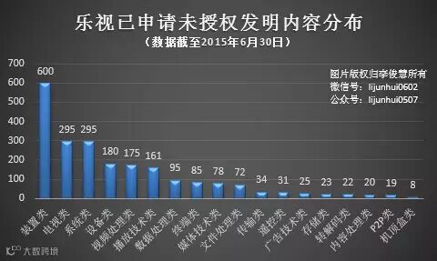 截止2015年6月30日,乐视已累计获得专利授权中,包括23件发明专利、63件实用新型专利和210件外观设计专利。