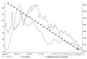 嘉宾-迈科1:我先说说,新常态经济与黑色金属的关系李总理去年提出新常态经济的新名词,主要意思是:中国经济新常态是21世纪中国社会经济呈现的一种状态,表现为经济相对稳定、增长速度适宜、结构优化、社会和谐等。经济发展条件和环境发生诸多重大转变,与传统不平衡、不协调、不可持续的粗放增长模式有本质区别。中国经济新常态是一种趋势性、不可逆的发展状态,意味着中国经济已进入一个与过去30多年高速增长期不同的新阶段。认识中国经济新常态需要认识新常态下的新趋势、新特征、新动力。以新常态判断当前中国经济的特征,将对整体黑色金属行业转型升级产生方向性、决定性的重大影响。新常态最直白的解释就是我们观察的GDP不会再向过往那样高速增长,而变为中高速或者中速增长。那么我做了一张图让大家看看GDP的增速与钢价的关系。