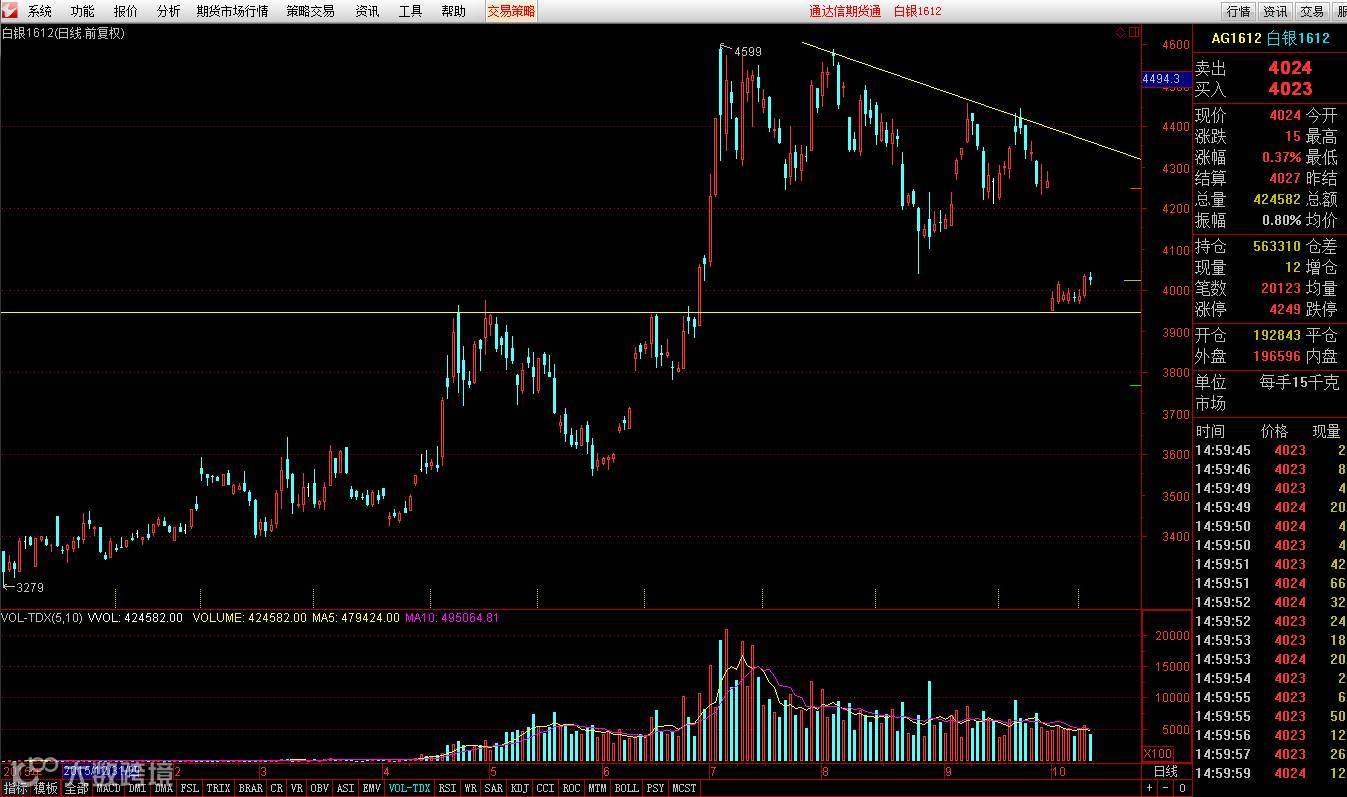上图是黄金白银日线图,虽然十一过后有一个大幅的跳空,但并没有破坏上升的区间,只是有窄幅震荡变为宽幅震荡了。