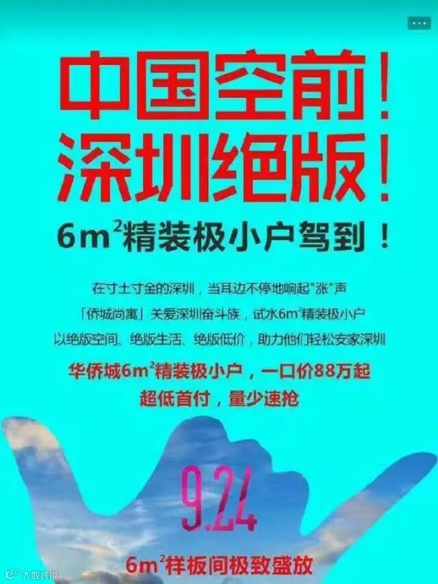 正如广告语所写的“中国空前!深圳绝版!”,这6平米房子的推出,绝对是中国楼市的标志性事件。