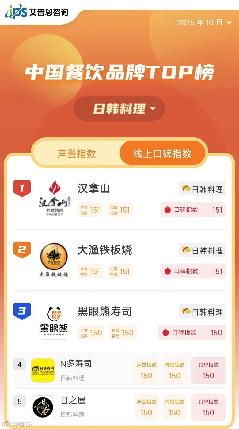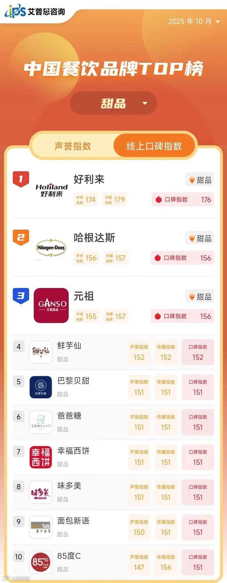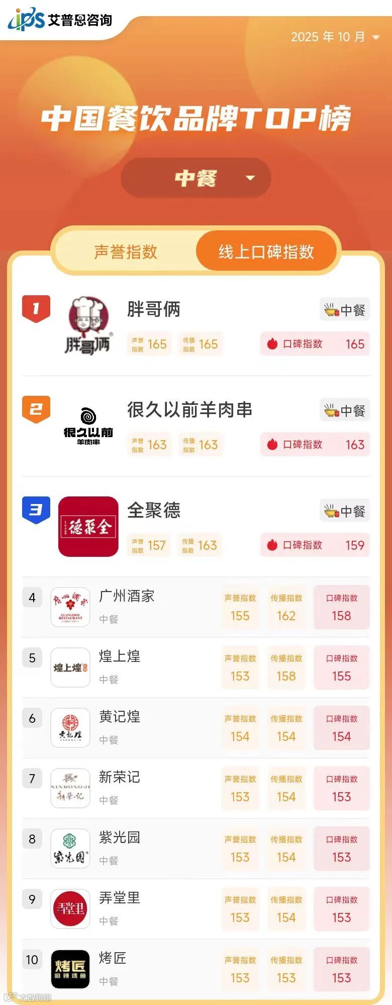 线上口碑指数TOP10