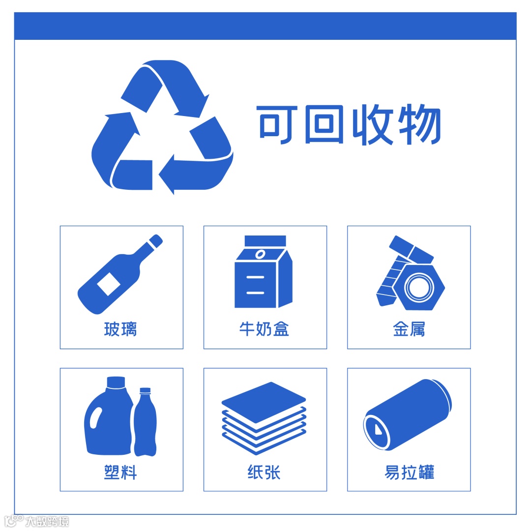 指适宜回收,和可循环再利用的废弃物主要包括废玻璃、废金属、废塑料、废纸张、废织物等。简单言之玻璃酒瓶、玻璃杯,金属易拉罐、金属瓶盖、塑料饮料瓶、塑料玩具、报纸、杂志、旧书、纸盒,旧书包、旧衣物等等。就属于这类垃圾,用蓝色可回收物垃圾桶收集暂由具备资质的再生资源回收企业。