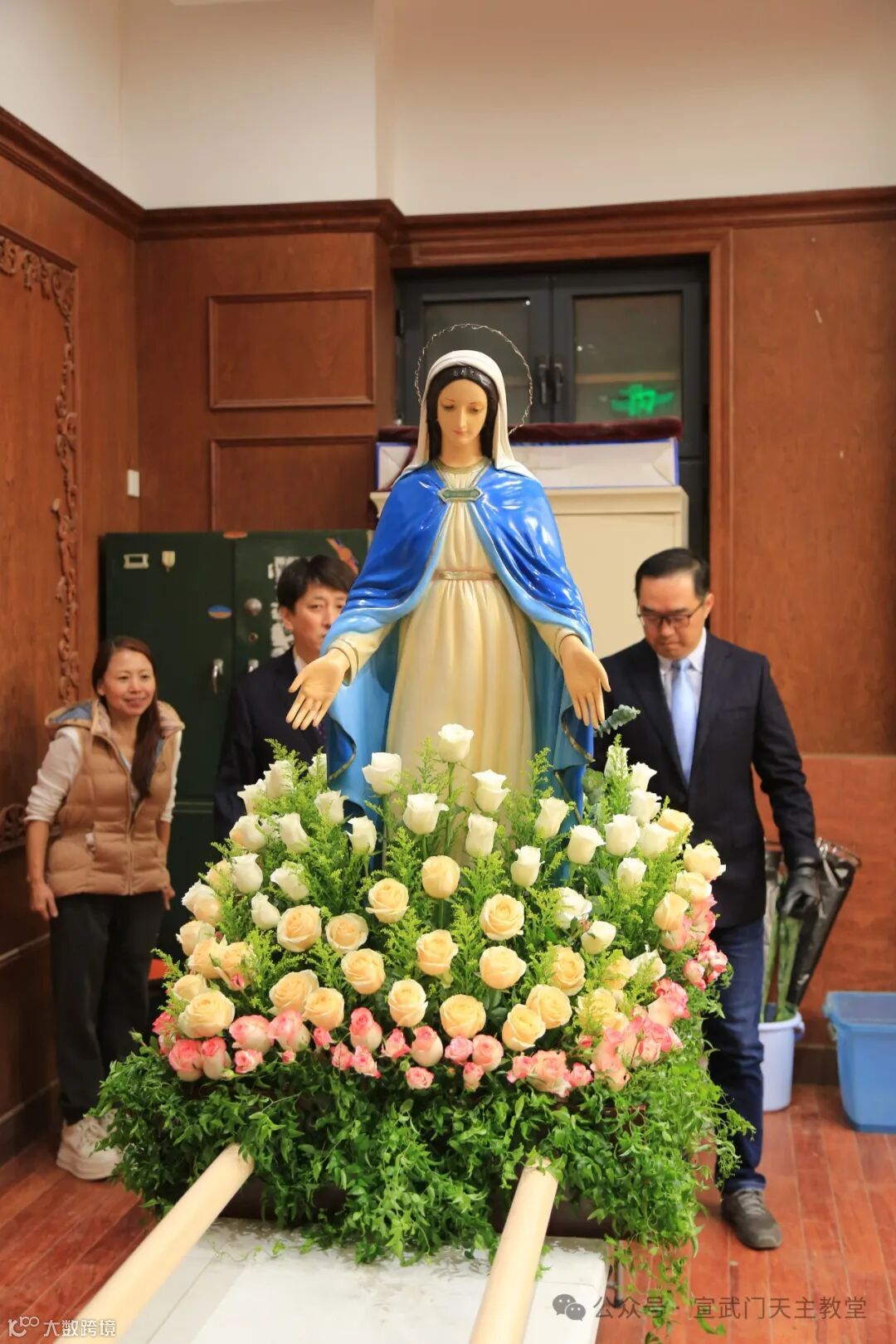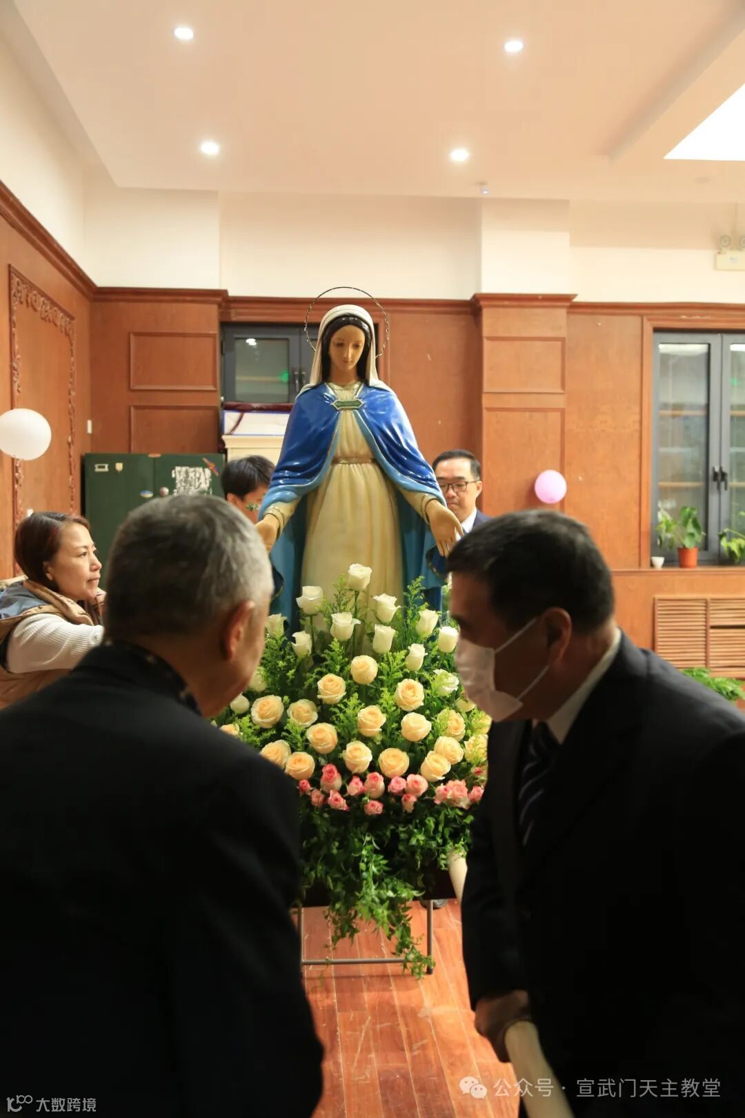 在赞美和称颂的歌声中,无染原罪圣母像在教堂的院落里缓缓经过人群,进入圣殿。
