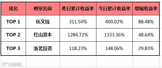 导师收益日增幅排行TOP 3