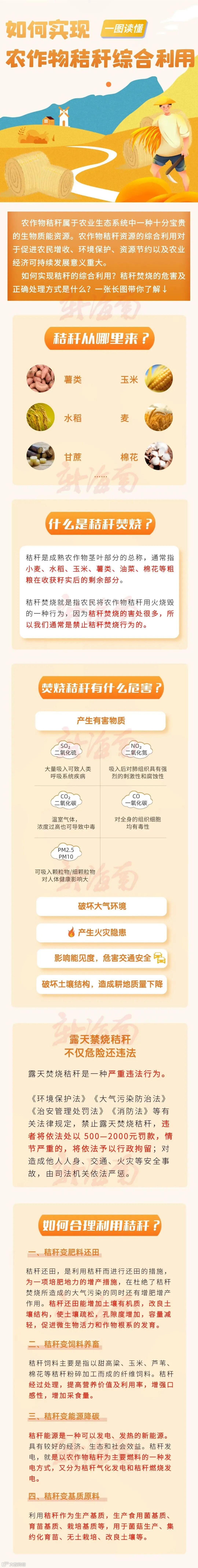 农作物秸秆属于农业生态系统中一种十分宝贵的生物质能资源。农作物秸秆资源的综合利用对于促进农民增收、环境保护、资源节约以及农业经济可持续发展意义重大。那么秸秆从哪里来?秸秆焚烧的危害是什么?如何实现秸秆的综合利用?一张长图带你了解↓