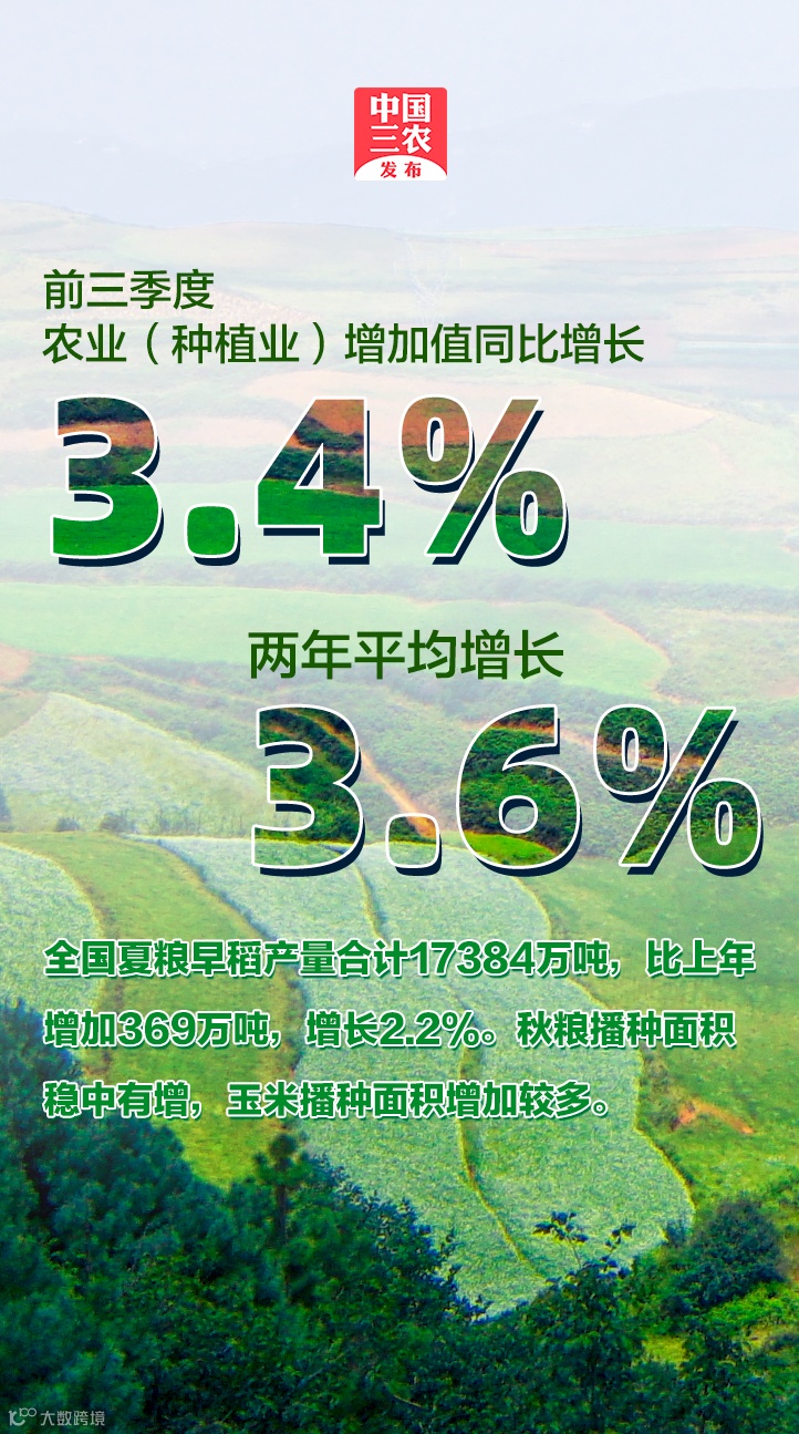 10月18日,国家统计局公布了前三季度我国经济形势数据。数据显示,前三季度国民经济总体保持恢复态势。其中,农业表现如何?粮食生产情况如何?猪肉够吃吗?农村居民收入水平有变化吗?一起来看看吧!
