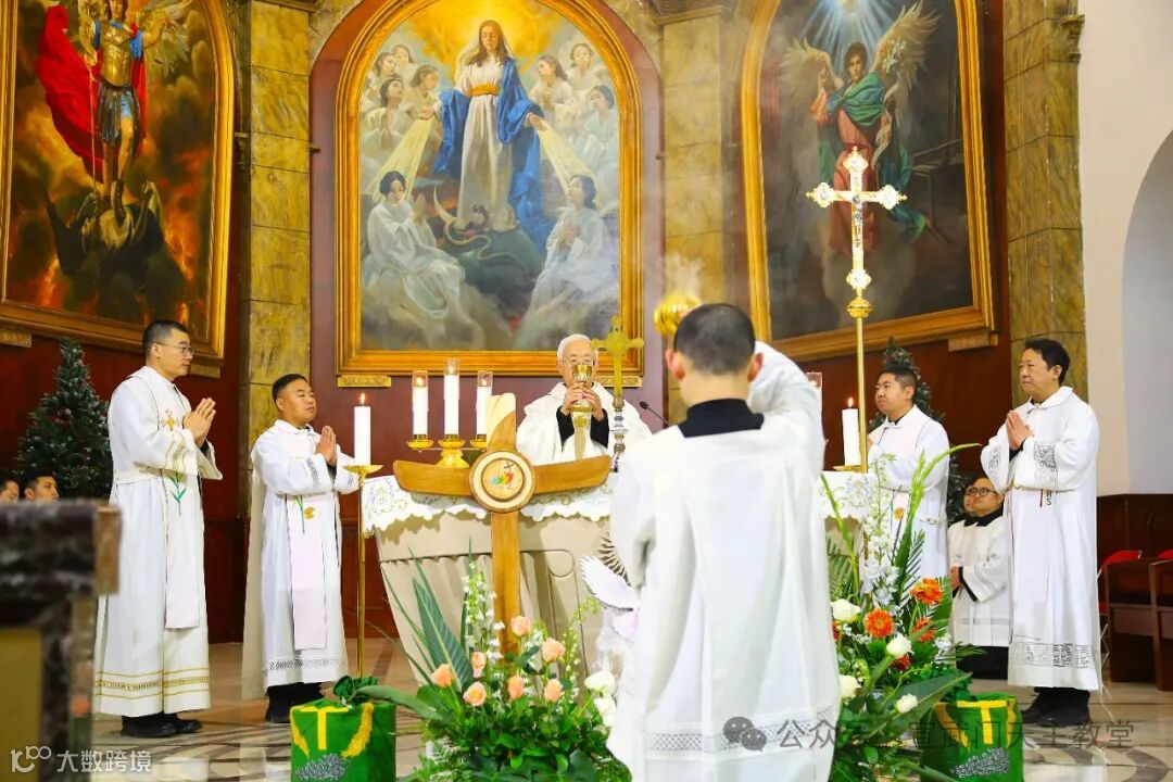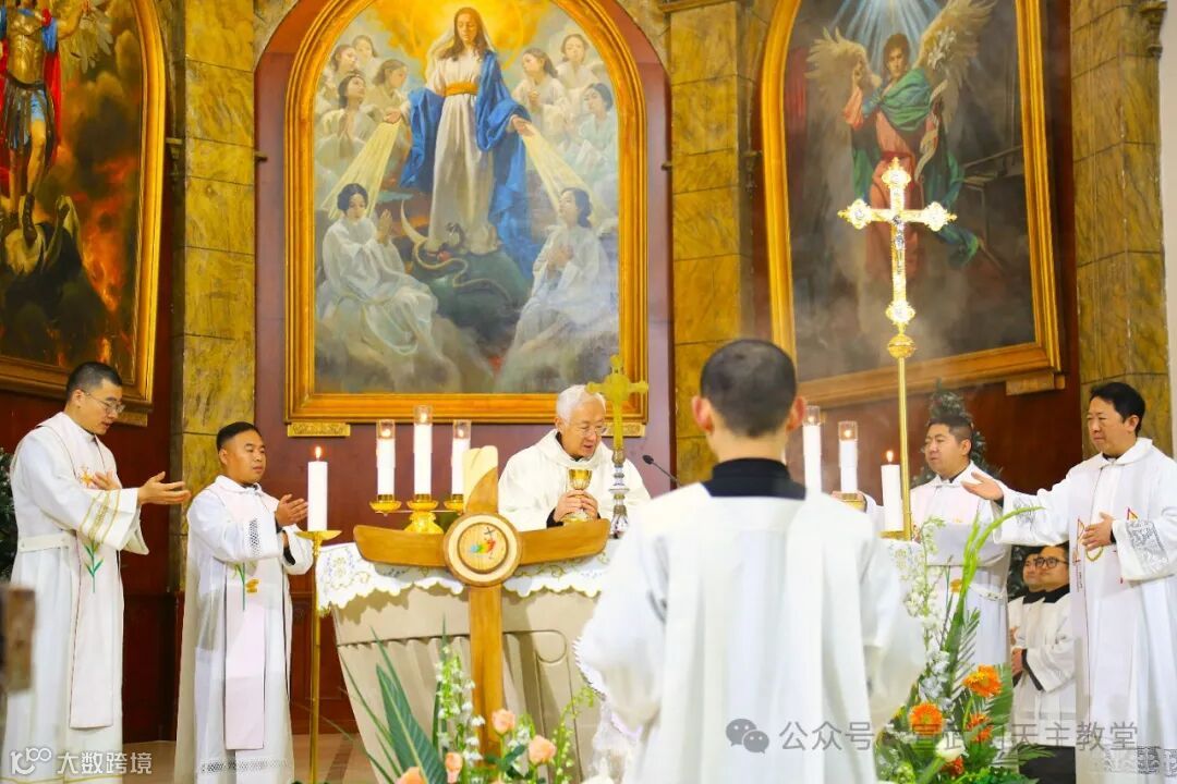 教区的李神父共同参与共祭,堂区段志军执事辅祭。整个过程神圣而庄严,教友们都沉浸在感恩之中 。