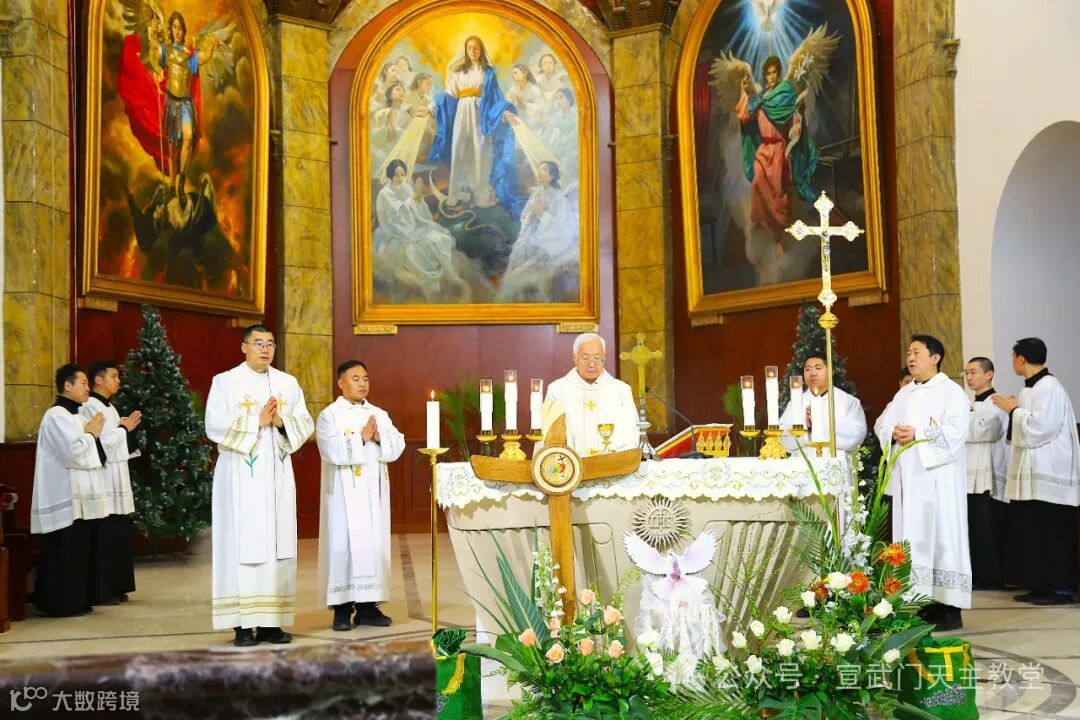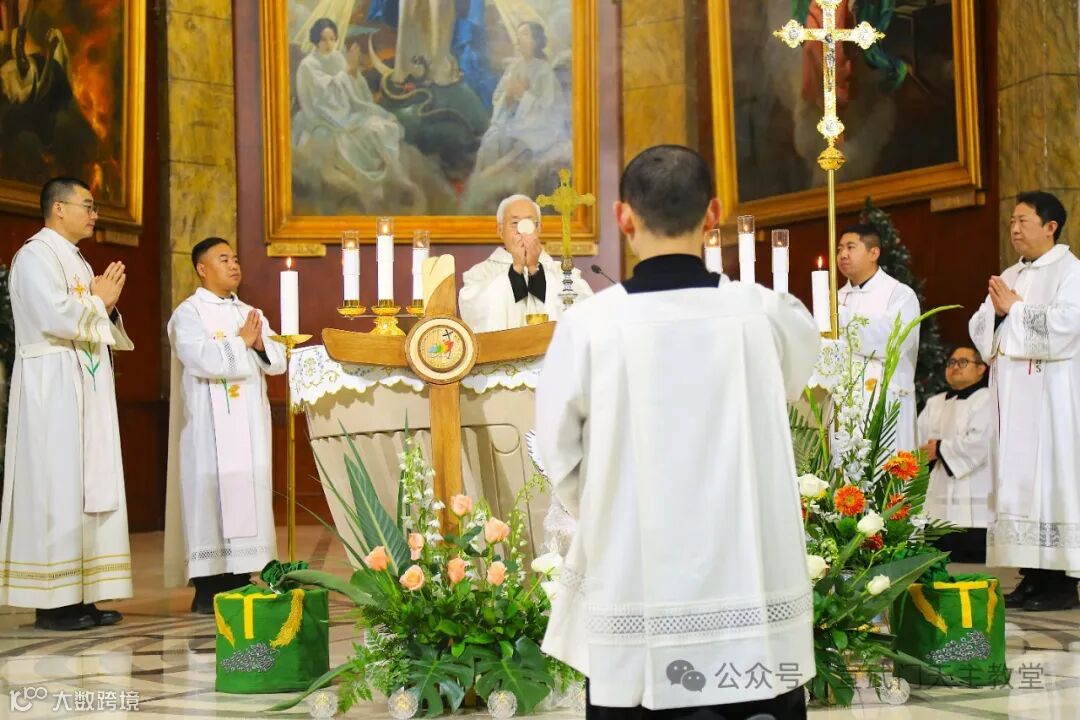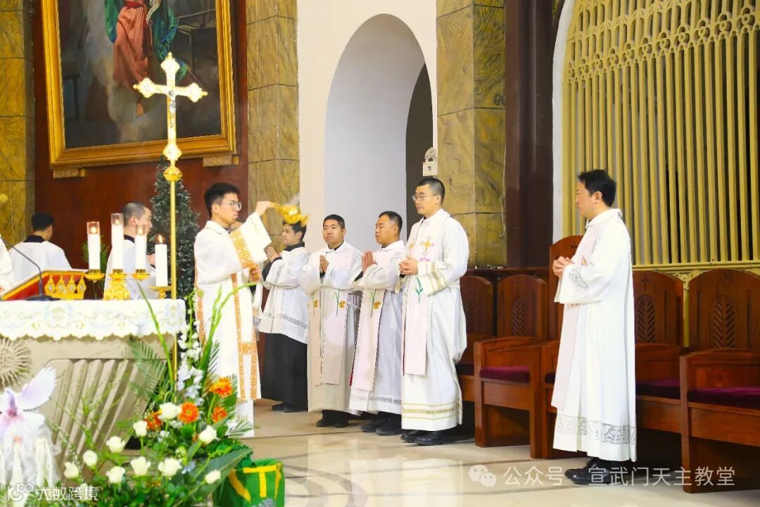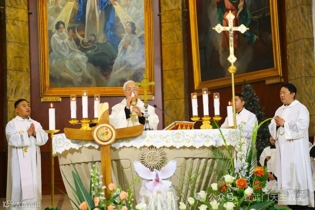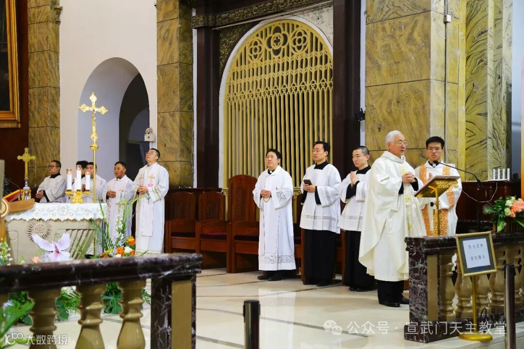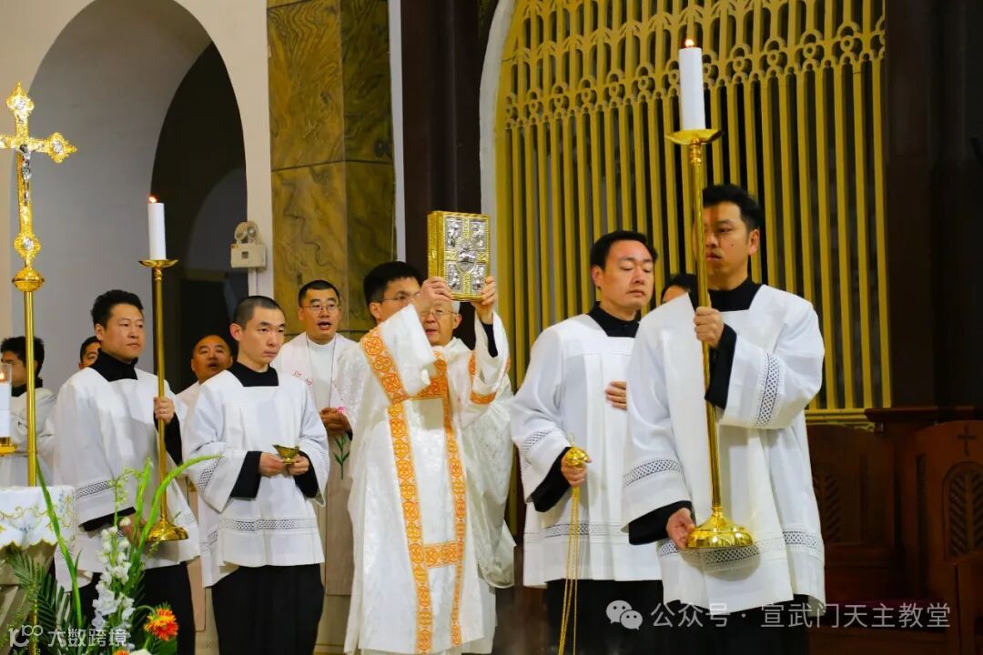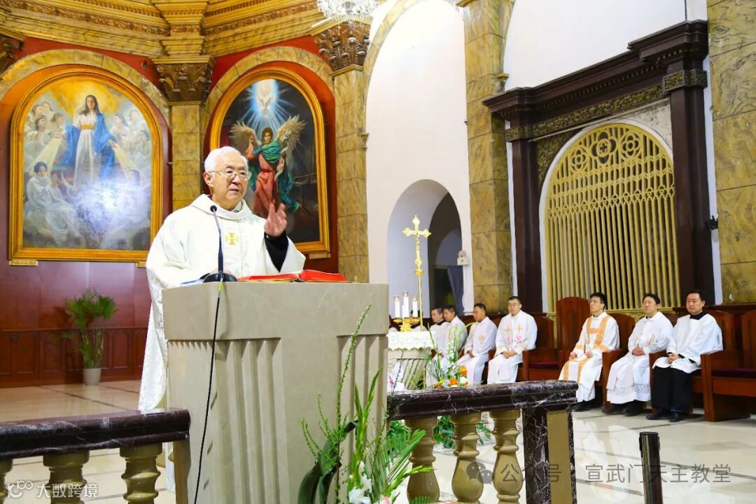 在庄严肃穆的仪式中,感恩祭由赵建敏神父主祭,教务委员会秘书长朱杰神父、南堂本堂张洪波神父,以及两位来自